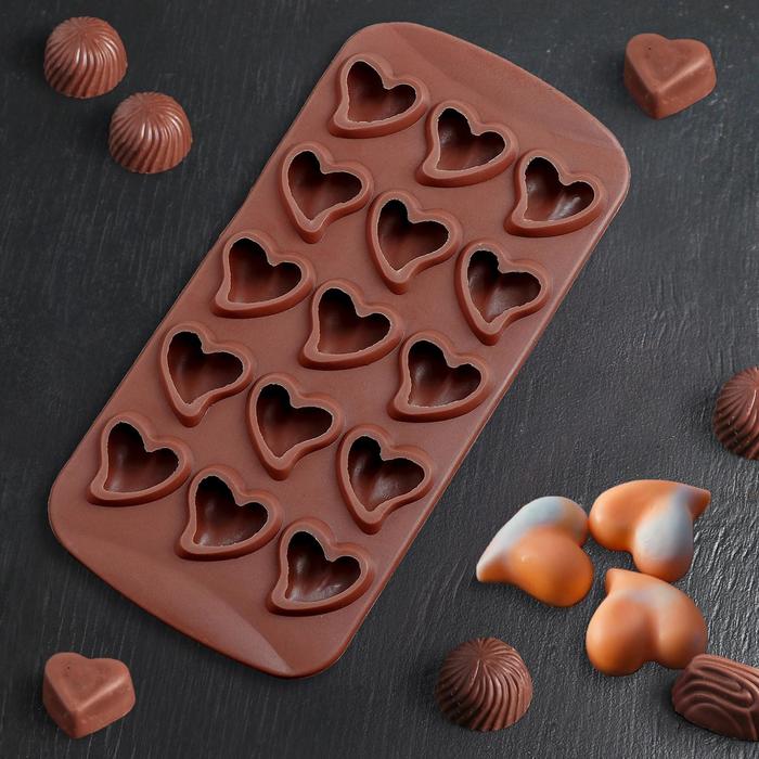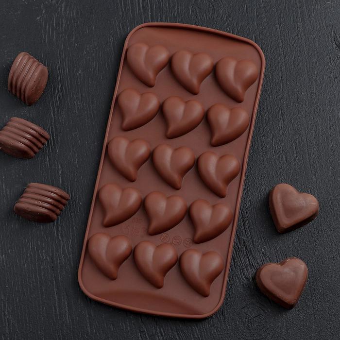 Форма для льда и шоколада "Сердца", 15 ячеек, цвет шоколадный