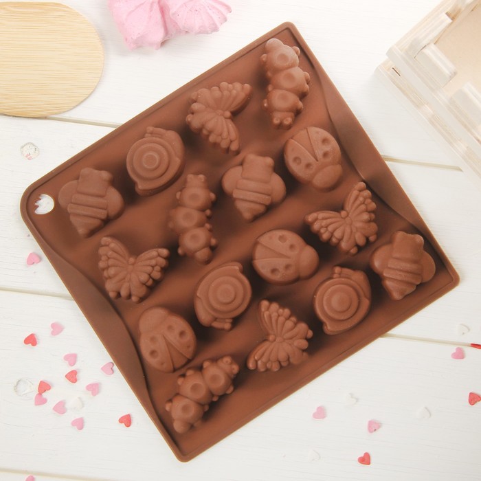 Форма для льда и шоколада "Насекомые" 16 ячеек, 17*18см