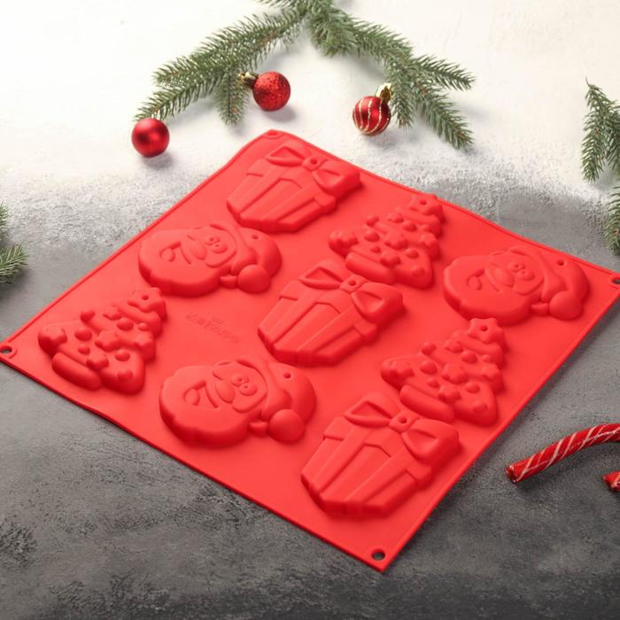 Форма для шоколада 3D Подарки под ёлкой, 30×30 см, 9 ячеек