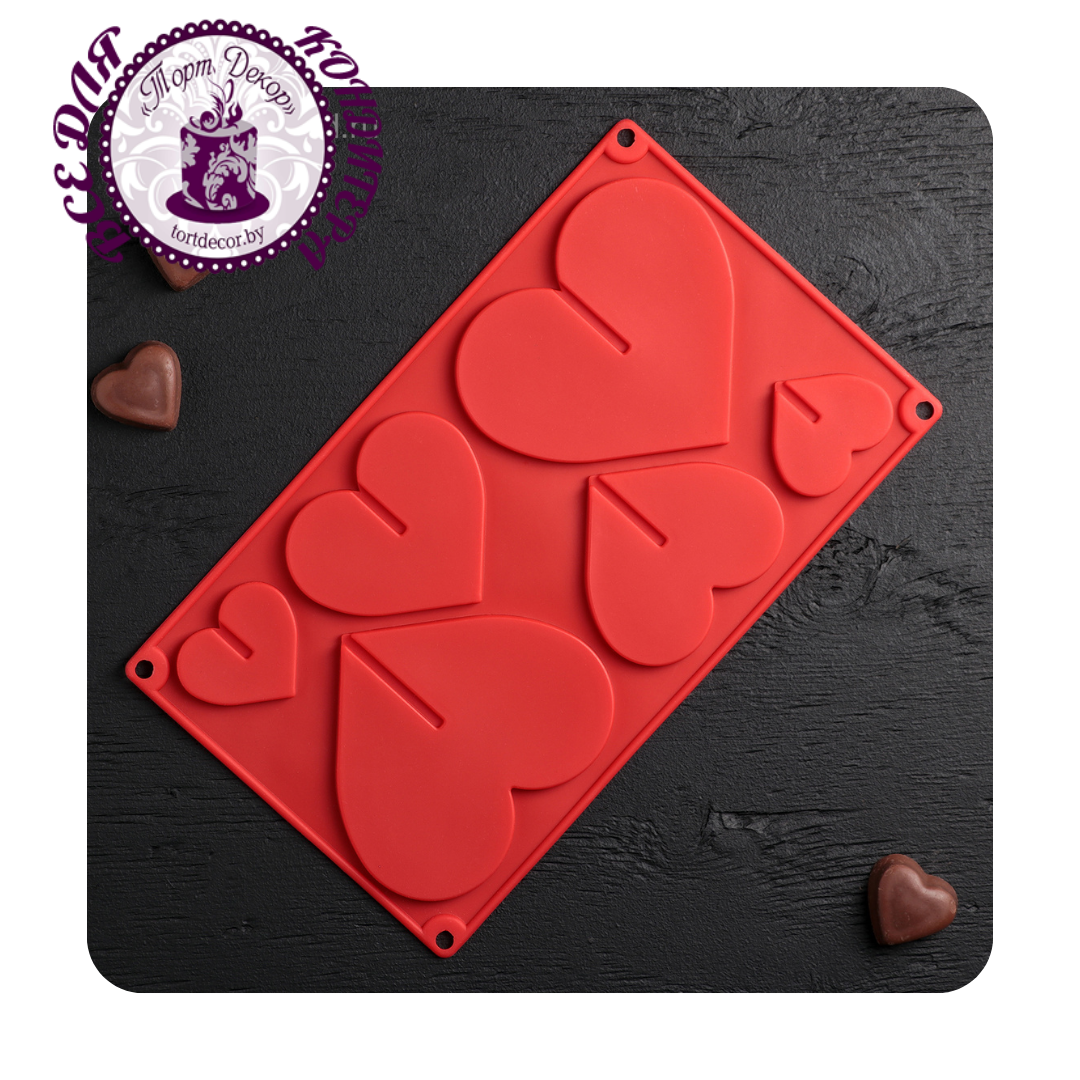 Форма силиконовая СЕРДЦЕ 3D 17×29 см 6 ячеек 8,5×6,2 см