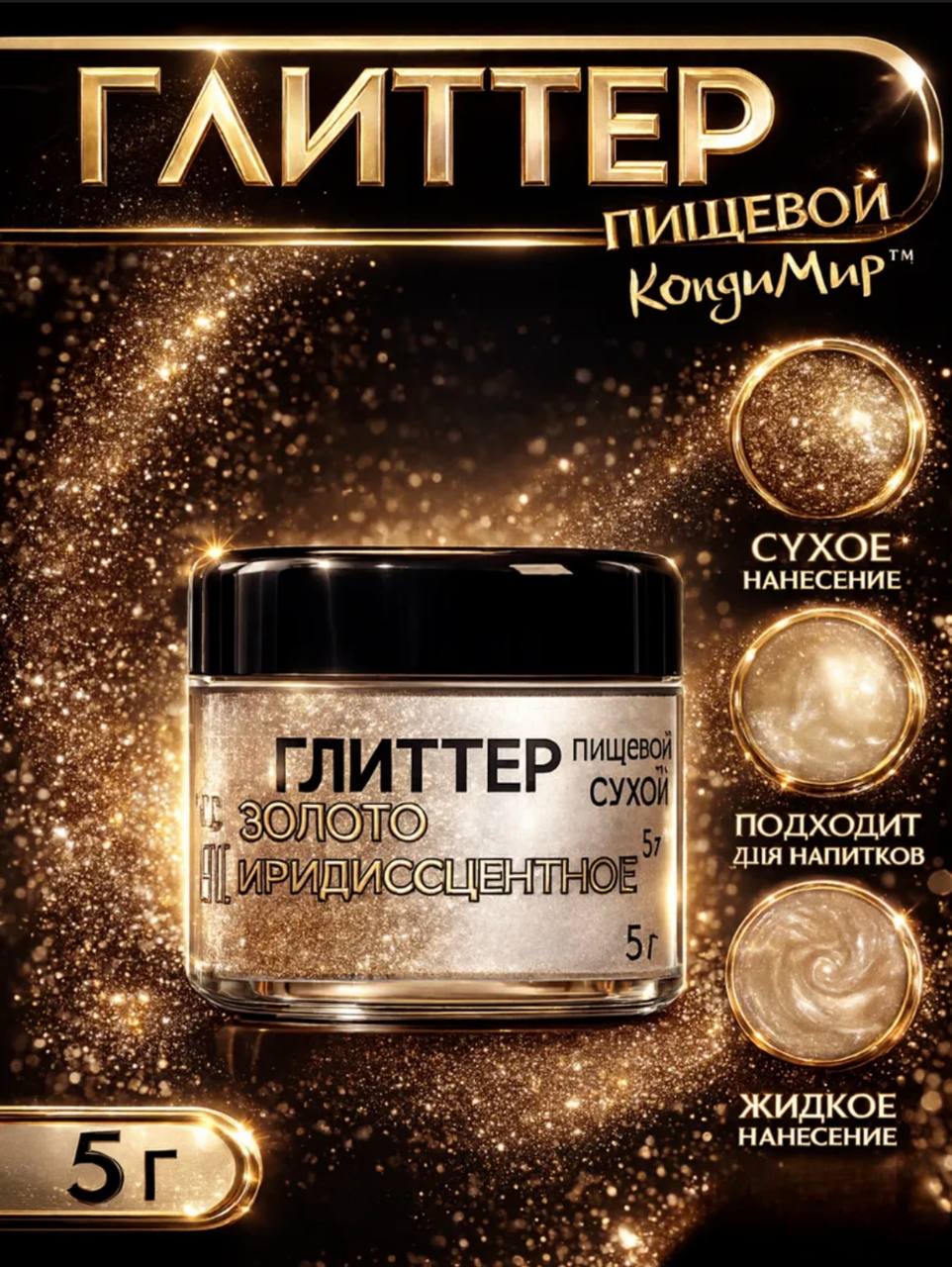 Глиттер пищевой сухой- золото иридисцентное 5г
