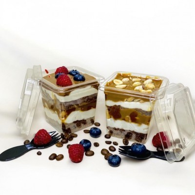 Пластиковый контейнер для упаковки пирожных, капкейков или других кондитерских изделий.