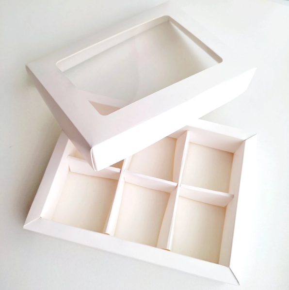Коробка на 6 конфет Белая с окном 12*16*3 см