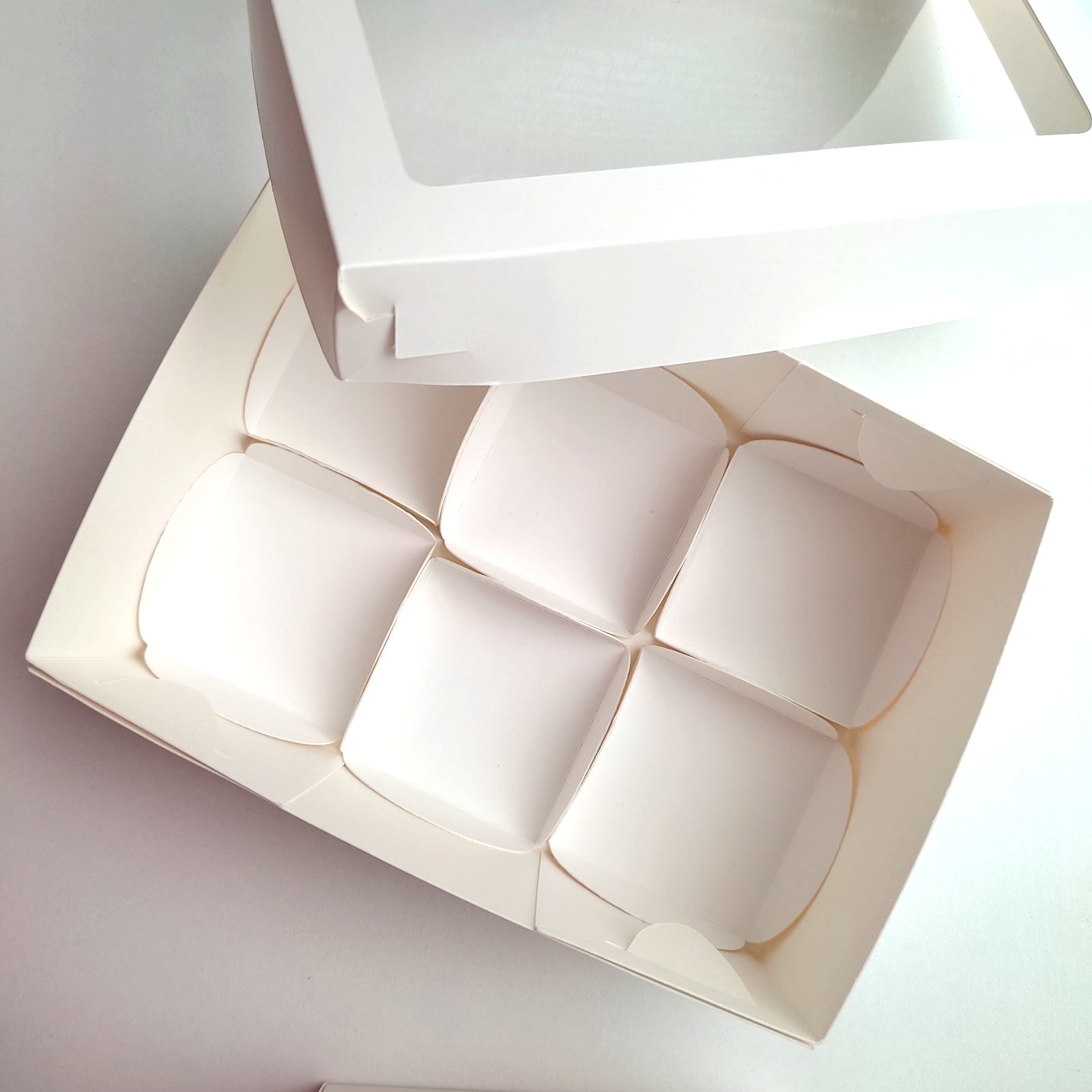 Коробка на 6 моти Белая с окном 12*17*6 см