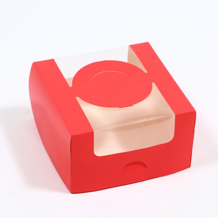Коробка под бенто-торт с ручкой Красная14*14*8 см