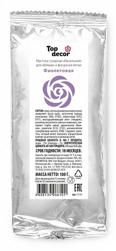 Область применения: Применяется для декорирования кондитерских изделий: обтягивания тортов, пирожных, моделирования фруктов, фигурной лепки, изготовления прослойки.