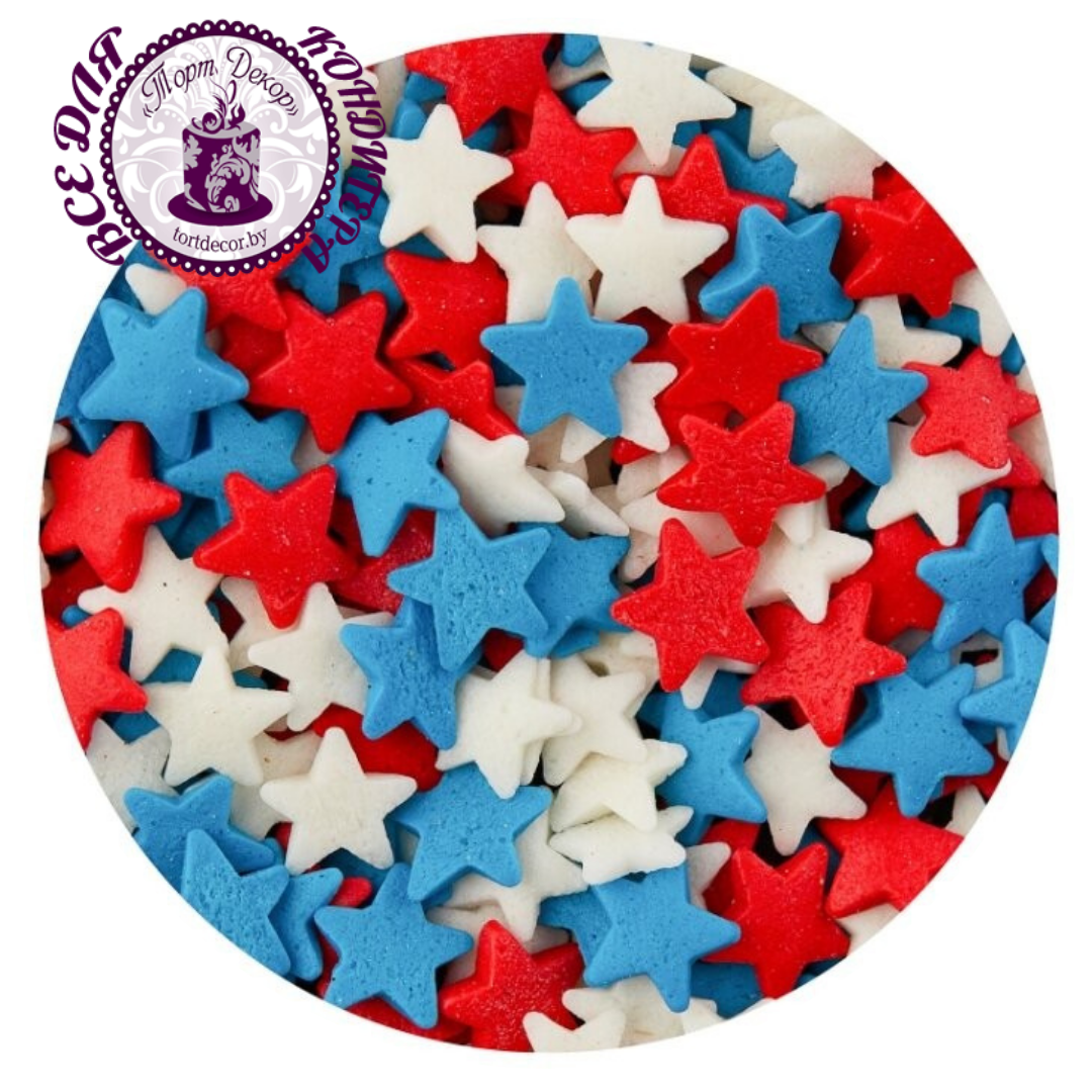 Посыпка сахарная Звезды красно-сине-белые 50 г