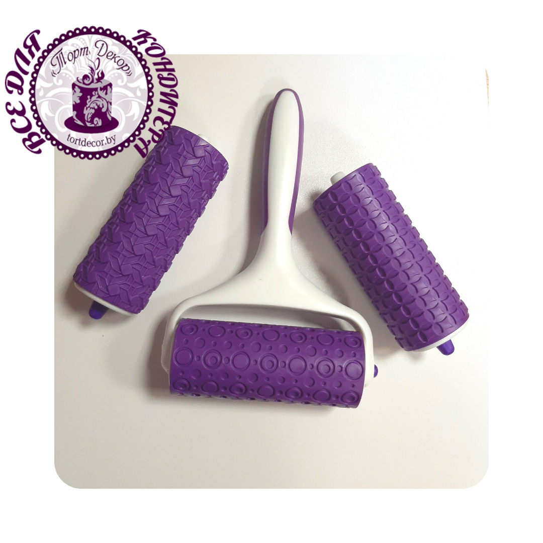 Набор валиков текстурных для декора лент и бордюров из мастики. Валик имеет тиснение в виде различных рисунков. Им можно легко украсить кондитерское изделие. Подходит для мытья в посудомоечных машинах.