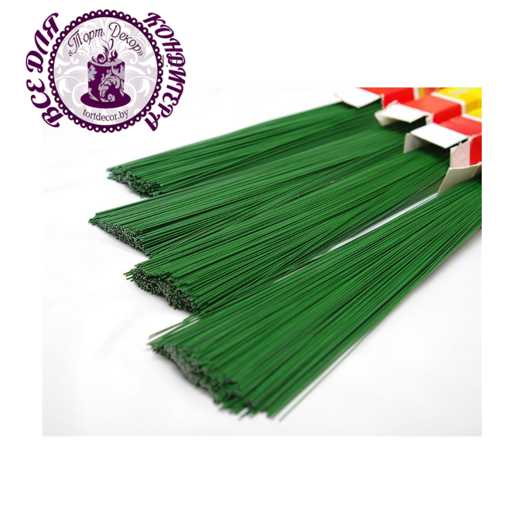 Тонкая прямая проволока, темно-зеленого цвета. Хорошо держит заданную форму. Незаменима при изготовлении цветочных композиций из мастики–используется в качестве основы или поддержки для цветка.