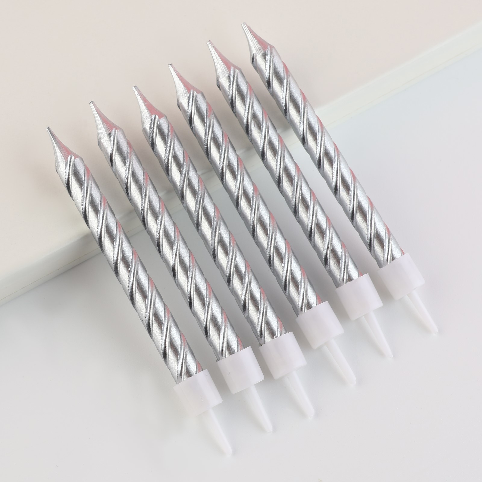 Свечи для торта - это неотъемлемый атрибут праздника. Набор свечей станет прекрасным украшением торта и других кондитерских изделий по случаю дня рождения, юбилея и любого другого торжества. Украсьте угощение стильными свечами, чтобы сделать особенный день ещё более ярким и незабываемым. Для того, чтобы свечи не задувались, им нужно дать 60 секунд разгореться, после чего их можно будет задувать, но уже через несколько секунд, как они погаснут, свечи загорятся снова. Для того,чтобы свечи все-таки потушить, их рекомендуется примочить водой или придавить фитиль свечи. Изготовлены из высокоочищенного пищевого парафина, который не влияет на вкусовые качества блюд, а удобная упаковка помогает сохранять свечи при длительном хранении и транспортировке.