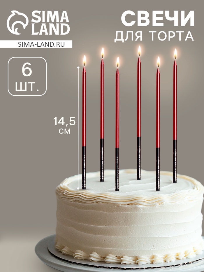 свечи в торт- 6шт. (красный с черным; синий с черным.