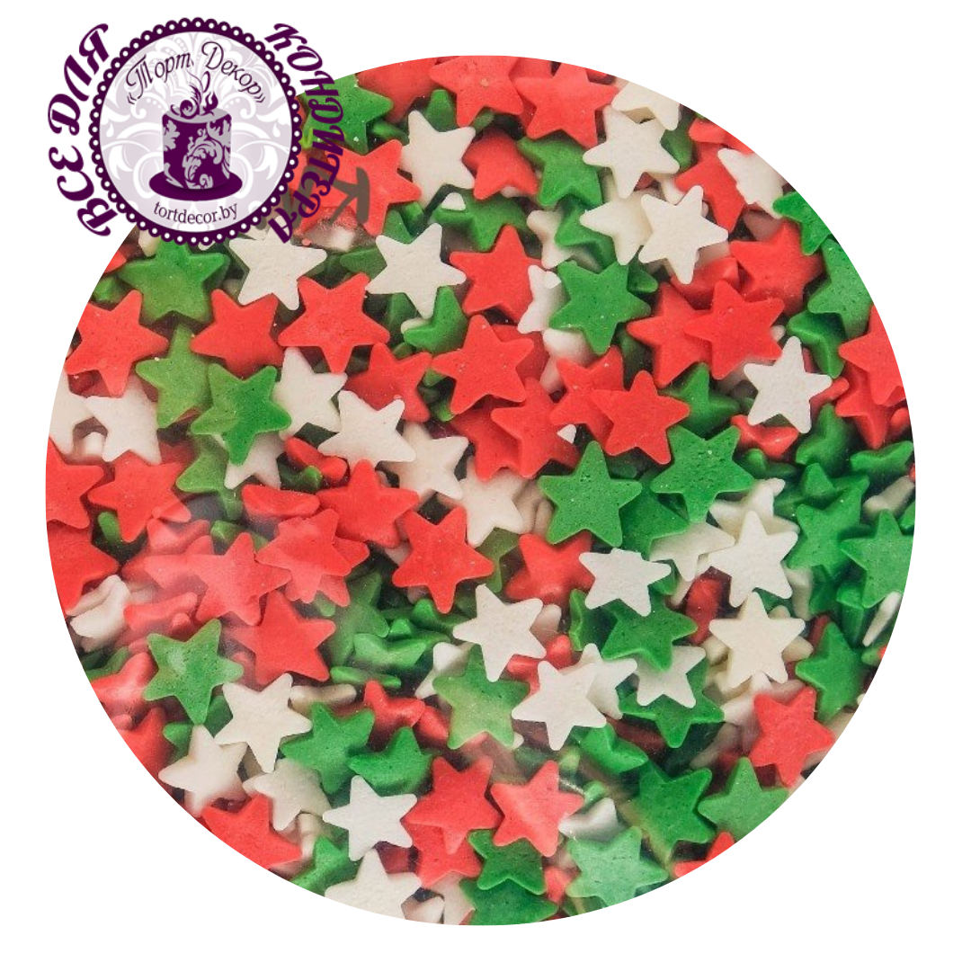 Посыпка ЗВЕЗДЫ (микс бело-зелено-красный) 50 г